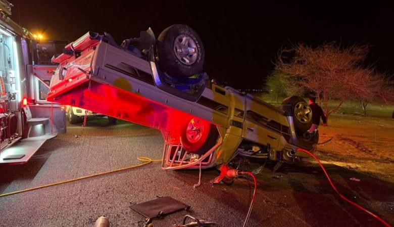 وفاة مواطن وإصابة شخصين في حادث تصادم وانقلاب على طريق «السالمي»