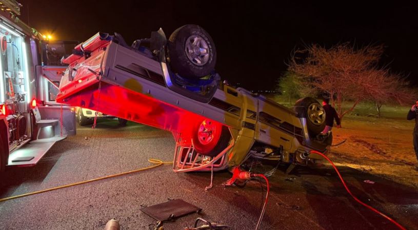 وفاة مواطن وإصابة شخصين في حادث تصادم وانقلاب على طريق «السالمي»
