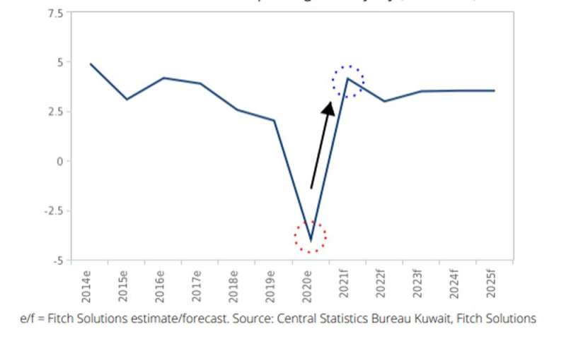 من جانب آخر، لفتت «فيتش سلوشنز» إلى أن توقعاتها الإيجابية للإنفاق الاستهلاكي في الكويت بـ2021 تتماشى مع توقعات فريق إدارة المخاطر للبلدان بأن الاقتصاد الكويتي سينمو بمعدل حقيقي 2.7 في المئة على أساس سنوي خلال 2021، مقارنة مع الانكماش بنسبة -5.5 في المئة بـ2020.