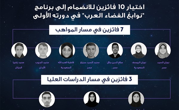 10 فائزين ينضمون إلى برنامج “نوابغ الفضاء العرب” بالإمارات
