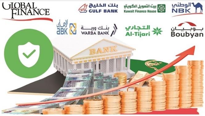 كشفت قائمة «جلوبال فاينانس» لأكثر 1000 بنك أمانا حول العالم عن تواجد 7 بنوك كويتية ضمن القائمة، وهي: بنك الكويت الوطني، وبنك بوبيان، وبيت التمويل الكويتي (بيتك)، والبنك الأهلي، وبنك الخليج، والبنك التجاري، وبنك وربة، وذلك بإجمالي أصول تبلغ 331 مليار دولار للبنوك الثمانية.