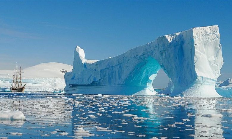 شاهد فيديو … حماية جبل جليدي من الذوبان بواسطة غطاء قماشي في السويد
